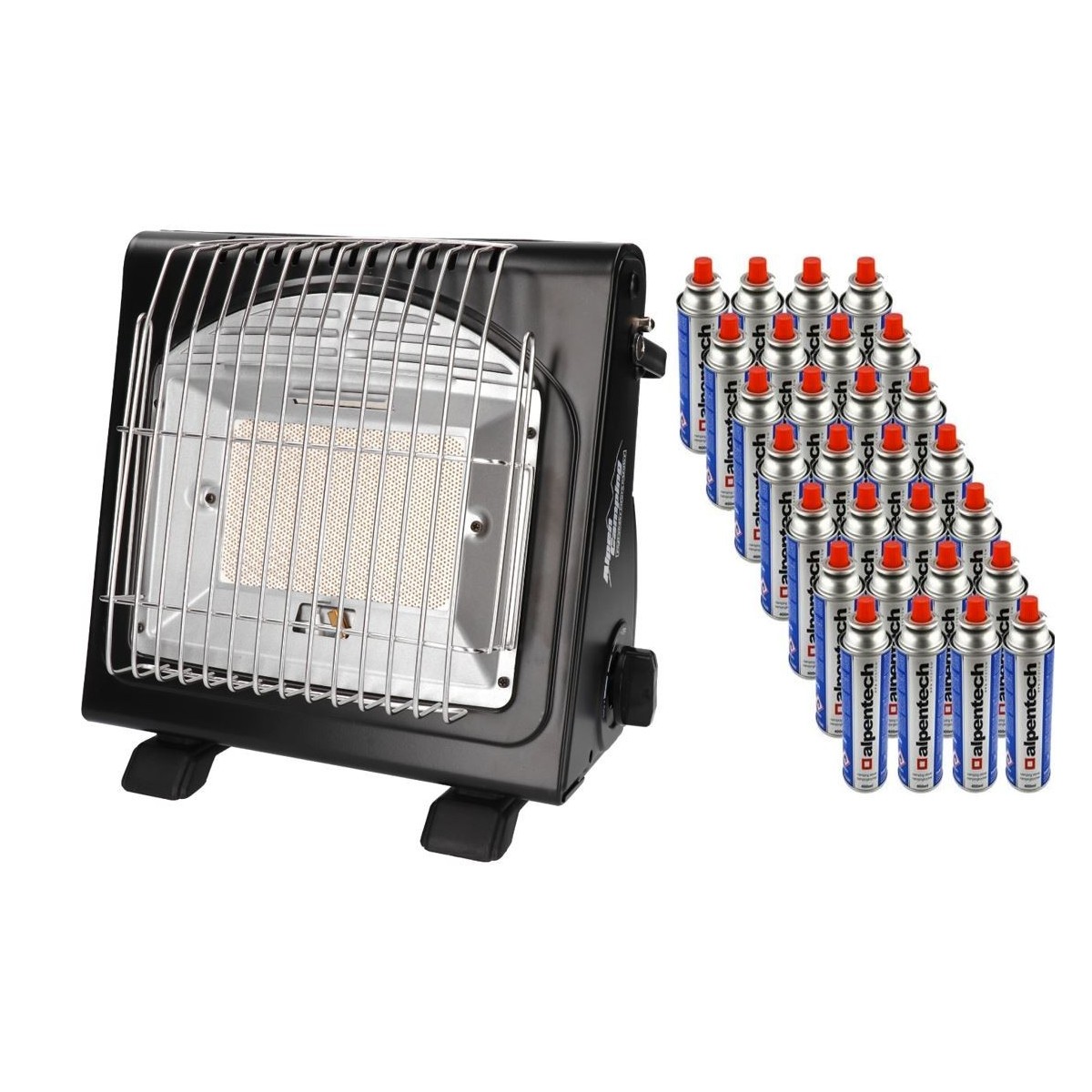 Riscaldatore a gas portatile 1700W + 28 cartucce di gas 2in1 ALPEN Stufa da campeggio a bassa temperatura