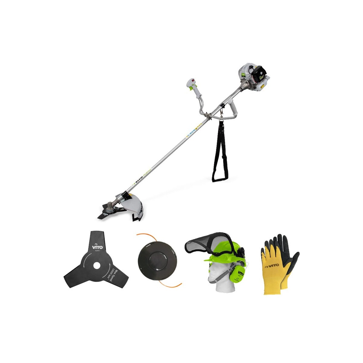 Il decespugliatore termico VITO 43CC EKO è ideale per falciare, diserbare, eliminare rovi e sottobosco fitto da qualsiasi terreno. Progettato per tutti i tipi di terreno: piccoli giardini domestici, parchi e grandi aree verdi, disboscamento e pulizia del paesaggio. Potente, leggero e maneggevole. Dotato di imbracatura, lama a 3 denti da 255 mm di diametro e bobina di filo con avvolgitore automatico.