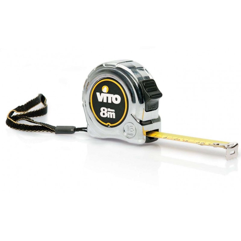 Metro a nastro retrattile da 8 metri VITO in acciaio cromato ad alta resistenza con gancio e pulsante di bloccaggio