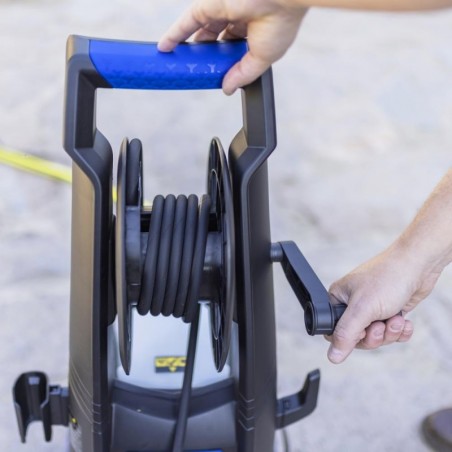 Ha un ampio avvolgicavo superiore per riporre facilmente i cavi. Grazie al tubo flessibile ad alta pressione lungo 5 metri, offre una grande libertà di movimento. In questo modo è possibile pulire facilmente grandi superfici. Questa idropulitrice è dotata di ruote e di un'impugnatura alta per migliorare il trasporto e la mobilità durante l'uso. Include anche una lancia tubolare aggiuntiva, che permette di raggiungere i punti più difficili o con un'altezza maggiore.