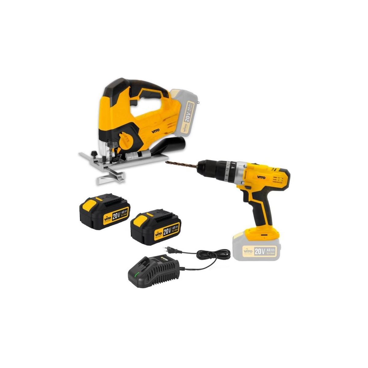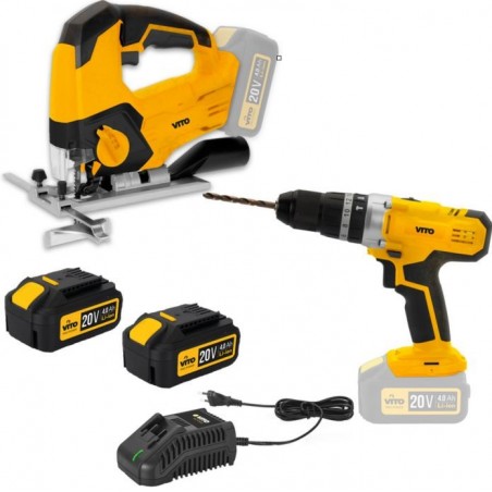 - Un trapano/avvitatore a batteria VITOPOWER 20 V. Un trapano per gli utenti più esigenti per la sua affidabilità e robustezza. Dotato di 3 funzioni Trapano, cacciavite e martello, presa di metallo. 2 velocità di lavoro, indicatore di carica, luce LED, funzione di arresto rapido e modalità reversibile. Impugnatura SOFT GRIP, più comoda ed ergonomica. Livello di rumorosità: 95 dB.