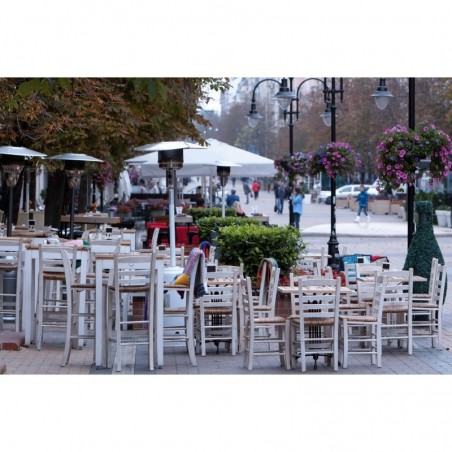 Questo riscaldatore da terrazzo vi permette di godervi le vostre serate all'aperto durante tutto l'anno attorno a una fonte di calore affidabile e duratura. Ideale per i professionisti della ristorazione ma anche per i privati, sarà perfettamente efficace sulle vostre terrazze e balconi. Dotato di ruote, sarà facile per voi spostarlo.