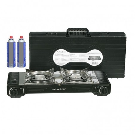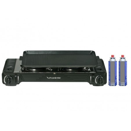 Fornello a gas XXL 2 fuochi 4400W FIVESTAR 2in1+ Plancha grill Fornello a gas portatile con custodia + 2 cartucce 250gr