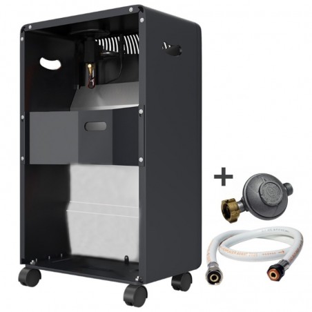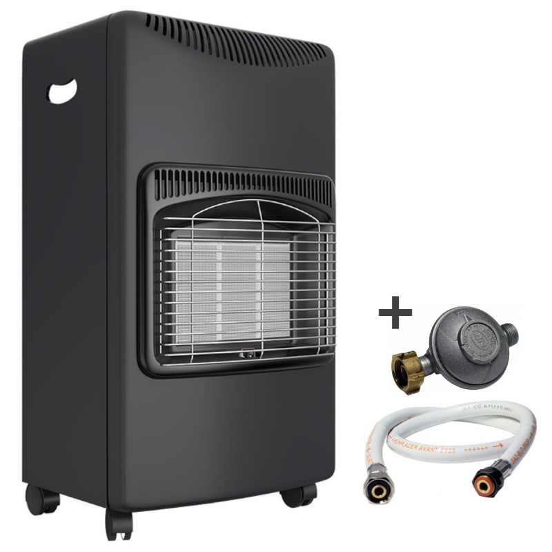 La stufa a gas a infrarossi Nova può riscaldare fino a 120m³ grazie alla potenza di 4200W e ai 3 pannelli in ceramica. Fornita con connettori: tubo flessibile + regolatore di butano pronto per essere installato sulla bombola del gas.