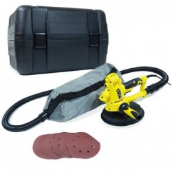 La levigatrice per cartongesso e cartongesso VITOPOWER ha una potenza di 800W. Viene fornito con 6 dischi abrasivi P150 con un diametro di 185 mm, un tubo flessibile di 2 metri e il suo sacco per la raccolta della polvere.