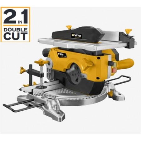 Troncatrice combinata VITO 2in1 che offre due tagli, tavolo MITRE e CROSS con potenza di 1200 W in grado di eseguire una varietà di tagli precisi a diverse angolazioni, rendendola uno strumento versatile per lavori di carpenteria e costruzione. Le diverse capacità di taglio, gli angoli regolabili, le guide e le caratteristiche di sicurezza ne fanno uno strumento completo per professionisti e amatori.
