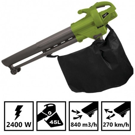 L'aspirafoglie elettrico ITAS2400 di ITOOLS offre una potenza di 2400W. È il dispositivo ideale per la pulizia e la manutenzione di vialetti, giardini o terrazze. Permette di rimuovere facilmente le foglie morte e altri residui vegetali. Questo aspirapolvere è dotato di un sacco con capacità di 45L e di due ruote nella parte anteriore che consentono di maneggiarlo senza sforzo.