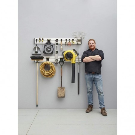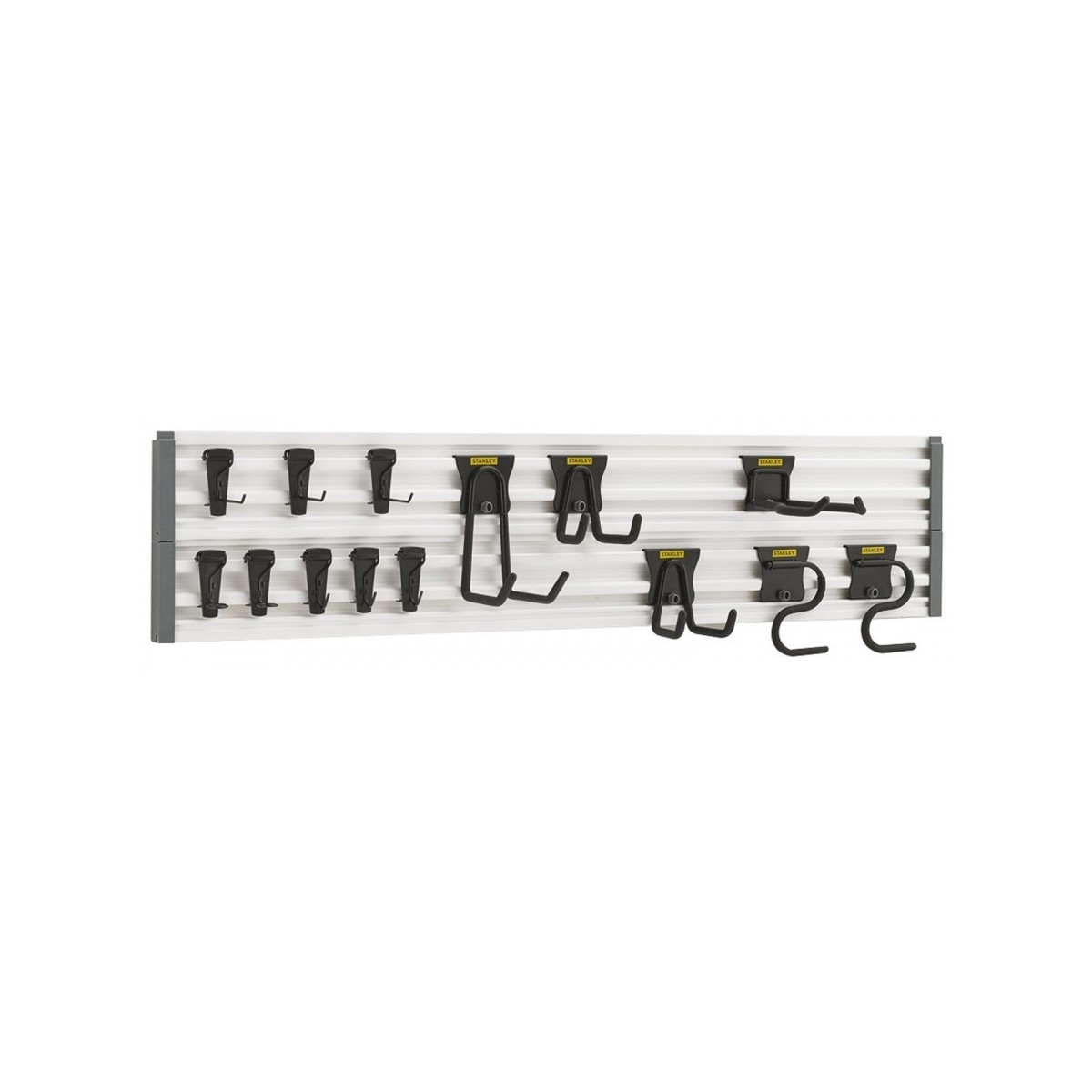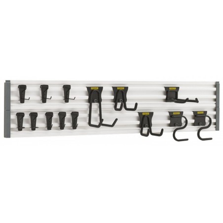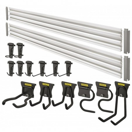 Questo set di guide STST-22000-1 di STANLEY è la soluzione per organizzare in modo semplice ed efficiente i garage di amatori e professionisti. Il sistema è personalizzabile e si adatta a qualsiasi ambiente, grazie all'estrema versatilità dei supporti e dei ganci.