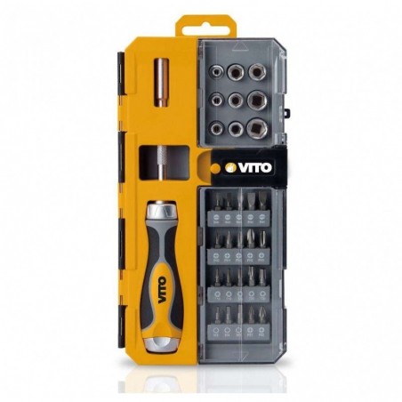 VITO 30 PEZZI Set di cacciavite + portabit e punte per cacciavite. (Cacciavite + 20 punte varie + 9 bussole)