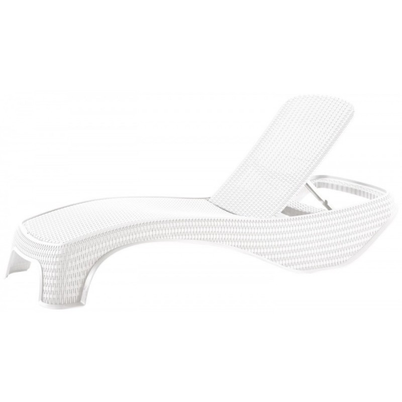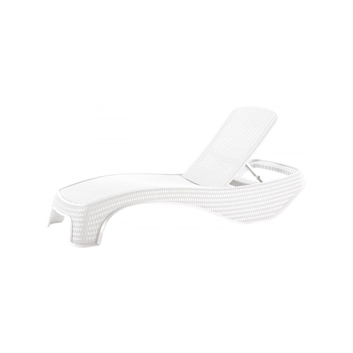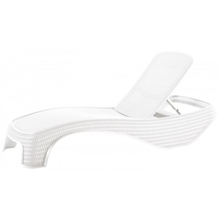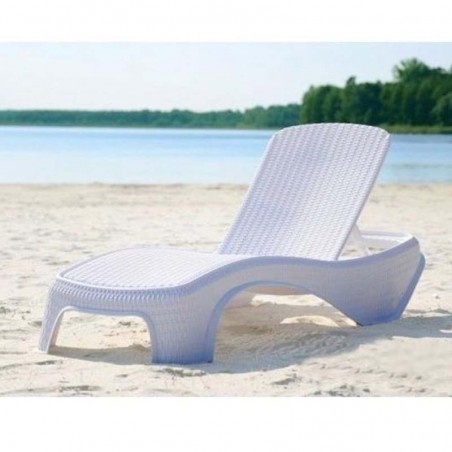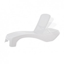 Realizzata in resina, questa sedia a sdraio ultra robusta e robusta, è perfettamente resistente agli agenti atmosferici. L'effetto rattan della sua struttura e il suo colore bianco si sposeranno perfettamente con i vostri esterni.