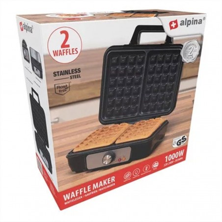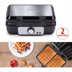 Concedetevi waffle belgi o classici con la piastra per waffle Alpina. Con una potenza di 1000 watt, questa piastra per waffle vi permetterà di ottenere 2 waffle croccanti in pochissimo tempo.