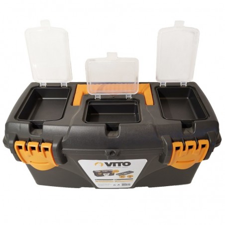 16' Cassetta degli attrezzi VITO, robusta. Le sue dimensioni sono 410 x 209 x 195 mm. Valigetta portautensili VITO per impieghi gravosi - Versatile, la userete per riporre, portare via o conservare gli attrezzi.