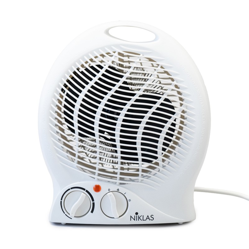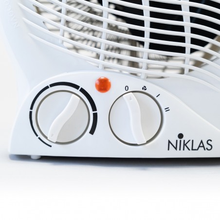 Termoventilatore Niklas da 2000W ideale per riscaldare e rinfrescare nella stagione calda. Dotato di un termostato regolabile da 5 a 35 gradi per mantenere costantemente la temperatura della stanza.