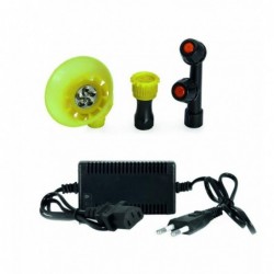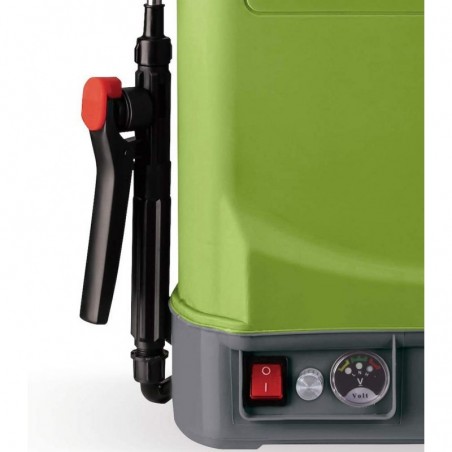 Un indicatore digitale di carica mostra il livello di carica della batteria del dispositivo situato sul retro. Nella confezione troverete un potenziometro di regolazione, un ugello 2 in 1, un ugello doppio conico e un caricabatterie da 12V / 8 AH.