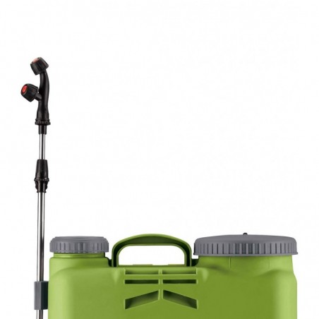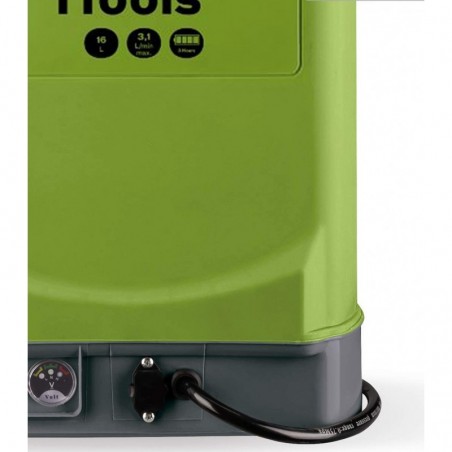 Idropulitrice a zaino a batteria da 16 litri con un'autonomia di 3 ore continuative.