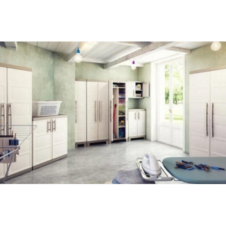 Infine, è rialzato grazie alle sue 4 gambe, che lo rendono ideale per essere collocato in garage e lavanderie. Realizzato in polipropilene, è resistente all'umidità, al gelo e alle intemperie. Realizzato in polipropilene, è resistente all'umidità, al gelo e alle intemperie. Di colore beige/grigio, si adatta perfettamente a qualsiasi spazio, in modo discreto ma elegante.